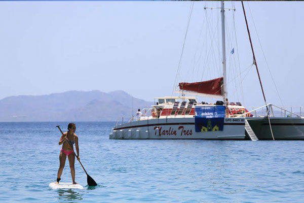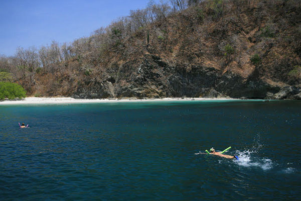 Coast while passing some of Guanacaste’s exotic bays, white sand beaches and tropical jungles. Gaze off the bow with a cold tropical drink prepared and served by our crew as you scan the seas for dolphins, sea turtles, flying fish or even a breaching whale. Stop in a tranquil bay, drop anchor and frolic in the blue Pacific. Snorkel in the bay or run down the deserted white sand beach while the ever helpful crew prepares a feast of chicken or pasta salad, fruit, chips, pico de gallo, guacamole and homemade chocolate chip cookies.